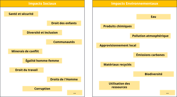 Les impacts évoqués sont ceux de la chaîne de valeur lors de l’achat d’un bien ou d’un service. Ainsi, ils peuvent être sensiblement différents d’une entreprise à l’autre, en fonction de son secteur d’activité, de sa taille et de son empreinte géographique.