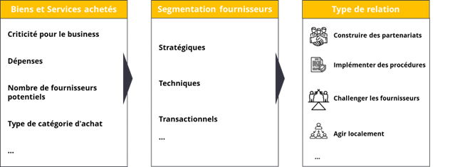 La connaissance et la segmentation du panel fournisseurs permettent de développer des solutions adaptées aux enjeux identifiés. Pour certaines familles d’achats, la relation client-fournisseur évolue vers un partenariat stratégique. : une relation de partenariat où chaque acteur s’intéresse à la chaîne de valeur dans une approche de co-construction et création de valeur.